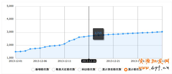 上圖是那段時間的新增粉絲數情況,通過這張圖可以看到粉絲數增長比較明顯,這個也是有受雙十二的影響,我們雙十二發送的內容跟平時會有所區別,主要結合店鋪做的產品活動為主,提前告知客戶關注微淘雙12當天將享受更多優惠,并在雙12推送出一些爆款折扣等。這種特殊的節日利用好了,也是增粉的好時機。
