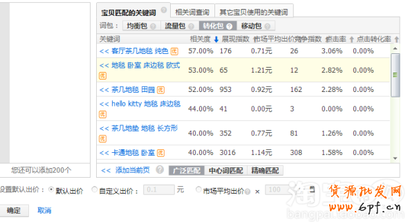 這里的移動詞包,可以為無線投放挑選關鍵詞,也代表這這些關鍵詞在無線端是有一定搜索量的。