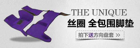3、從不同點上來說,圖1的產品圖片陰影處理、文案“拍下送方向盤套”的效果處理,更突出了產品的質感。而且這是一幅推廣單品的圖片,產品的特征——絲圈全包圍腳墊,產品的優惠——送方向盤套套,用幾個字就表達的很清晰,重點突出。