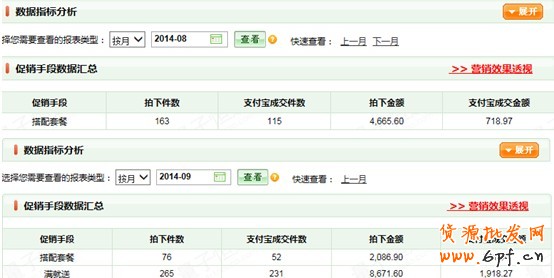 除了類目的原因外,還有就是如滿就送的具體內容不一樣,效果也是不一樣的。彩妝的店鋪8月的時候做的滿就送的活動是買3送小樣,9月的時候做的就是滿多少元減多少元的活動,產生的效果就是9月的這個活動就有了明顯的效果。