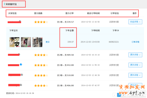 ◆這是在實(shí)時(shí)直播里面的實(shí)時(shí)催付寶功能,這個(gè)功能上線后會(huì)給客服MM們節(jié)省很多的時(shí)間,可以針對(duì)未付款客戶(hù)按潛力指數(shù)依次統(tǒng)一的進(jìn)行催付,對(duì)于客服MM來(lái)說(shuō)這項(xiàng)功能是一項(xiàng)很大的福利,省去了去店鋪后臺(tái)再去篩選的時(shí)間,通過(guò)這里依次進(jìn)行催付就可以了,高成交有木有!!!
