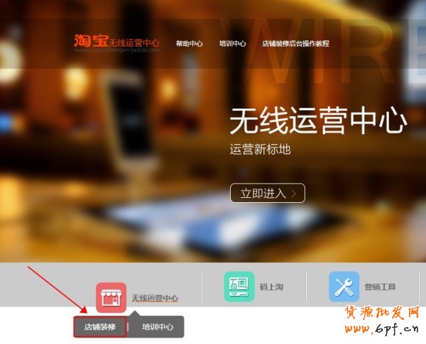 首先,進入無線運營中心——店鋪裝修 頁面,鏈接:http://wuxian.taobao.com/