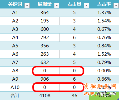 如果賬戶里存在1W次展現也沒有1個點擊的詞的話,是會拉低CTR的,這樣的詞就必須要換掉。