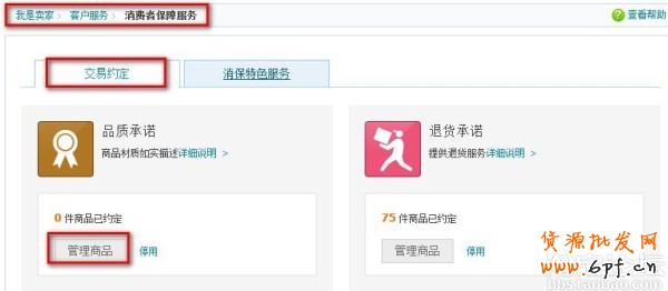 2)單個商品停用,進入賣家中心“消費者保障”中“交易約定”在商品管理界面,選中要停用的商品選擇“未約定”即停用。