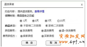 箱包、內衣與服飾配件三大類目的退貨承諾服務2014年1月06日已正式上線 “男女裝與鞋類退貨承諾”服務,賣家可自行設置保障天數、保障內容、退貨運費與保障人群,具體設置的內容請大家仔細閱讀下文。