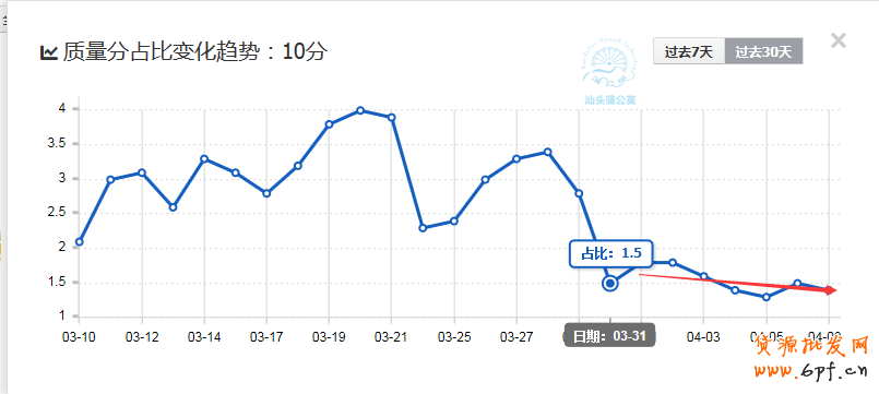 以上是小編優(yōu)化的女裝牛仔褲類目的一款寶貝,從3.31開始,10分的關(guān)鍵詞質(zhì)量得分“duang”就下滑了。