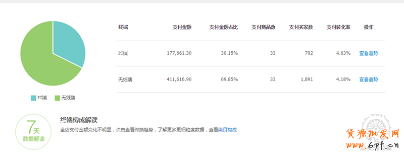 以上是店鋪生意參謀中,店鋪成交的主要來源,而店鋪的成交人群主要是來自無線端,結合店鋪的情況,直通車這邊也對無線端進行了投放,并根據賬戶數據的反饋和對無線端的數據分析,對賬戶的無線端做好調整。因此從以下圖可以看出,無線端的整體數據都相對pc端的好。