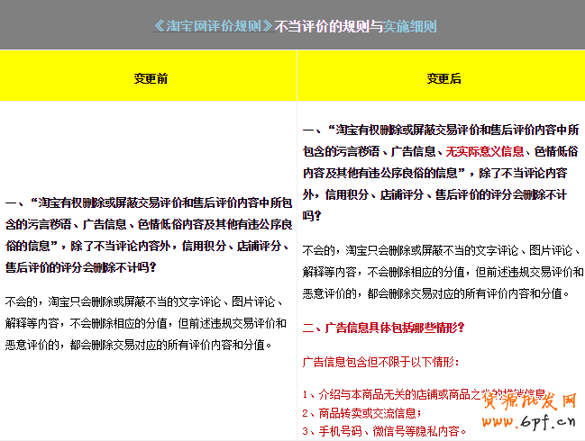 1、不當評價中新增“無實際意義信息”情形,并豐富“廣告信息”的具體內容;