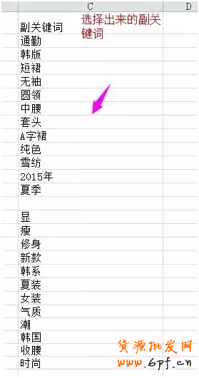 3、結(jié)合寶貝本身的屬性(副關(guān)鍵詞),把可以作為侯選主要競爭關(guān)鍵詞的詞復(fù)制粘貼到EXCEL表格當(dāng)中。