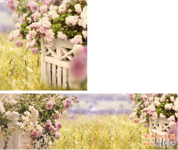 分別對花和柵欄進行調色,同時添加遠景和近景,遠景模糊調亮,近景模糊調暗;另外,桃色跟左邊的花的方法一樣,最終的效果就是要融入環境。