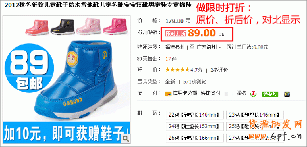 價格設置:原價按實價來設置,在原價的基礎上打折,打折力度要大,且限定優惠時間,價格鮮明對比,限時打折,造成緊張感優惠感,從而激起買家的購買欲。如圖: