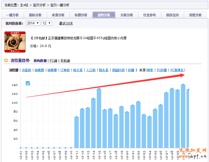 而較之其他成型的店鋪來說,這個新店在品牌丶信譽等級以及流量獲取等方面都處于劣勢。根據競爭產品分析,3A桂圓在價格上相對占有優勢,且寶貝品質和其他店鋪相比無可厚非,各方面綜合確定將此款作為店鋪的引流款,并以此產品為切入點帶動其他利潤款產品銷售。