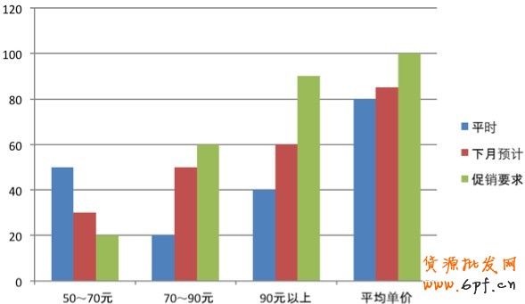 假設是一個做服裝的店,目前客單價各數字段的銷量分布是第一組數據,我們可以算出平均單價是80元。現在秋末冬初,根據以往的經驗和自然的銷量增長,我們可以得到第二組數字,同樣算出來客單價漲到了85元。那么促銷的“滿xx元”應該怎么定呢?