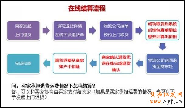 1、上門退貨運費均通過線上方式由商家支付給快遞公司。