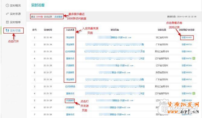 實時訪客主要提供店鋪的實時訪客記錄,能實時了解店鋪訪客的瀏覽情況,一期只做了PC端的實時訪客數據,二期會把無線APP端、無線WAP端的數據也引入,盡請期待。