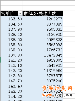對每一個階段的價格做一個匯總,每一個價格段都可以清楚明白的了解一個具體的被關(guān)注數(shù)量,也可以一眼能看出這個類目的產(chǎn)品,哪一個價位段的是更受人們關(guān)注,當(dāng)然這個肯定不限于關(guān)注人數(shù),也可以是收藏人數(shù)、搜索點擊次數(shù)等一系列的數(shù)據(jù),都可以用這個方法來進行一個觀察。