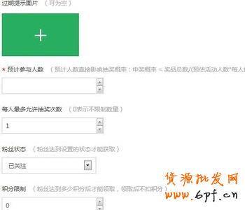 6、接著就是設置過期提示圖片,如果你過期說明沒有的話,這個圖片就不需要填寫。預計參與人數的話根據自己實際情況來定,然后就是抽獎次數等等,如下圖所示。