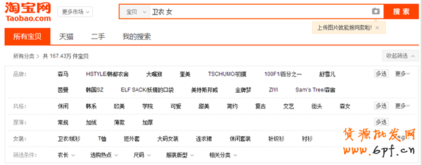第一步:搜索關鍵詞“衛衣女”