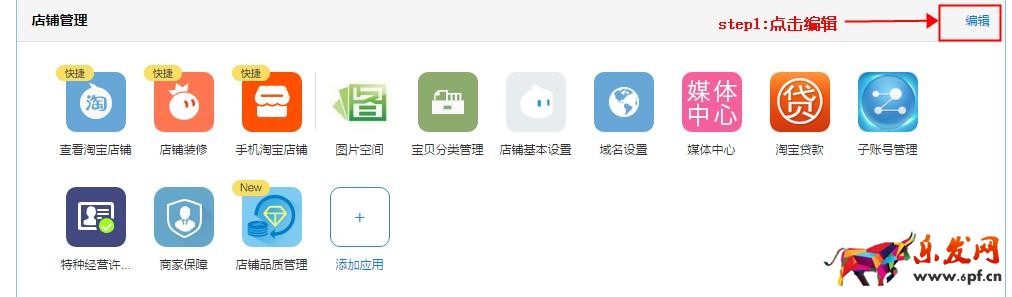 備注:要將鼠標放置在“店鋪管理”模塊上面,才會出現自定義!