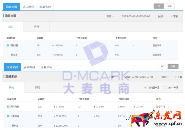 以下為聚劃算預熱第二天的店鋪PC和無線流量情況: