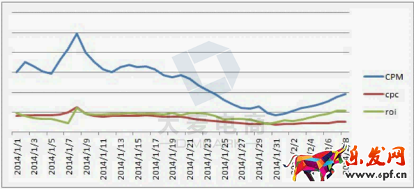 3. 在節后會有一個小高峰,ROI會有一個較大的上漲空間,但是cpc并沒有同比上漲,節后也是一個不錯的時間段。