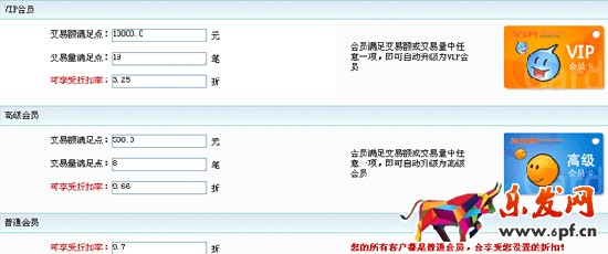 PS:使用了淘寶網店版并且是店鋪信譽等級是三心以上的才能設置,在網店版中設置了買家級別之后,該級別會員在購買本店商品時將會自動享受相關折扣(特價商品除外)。