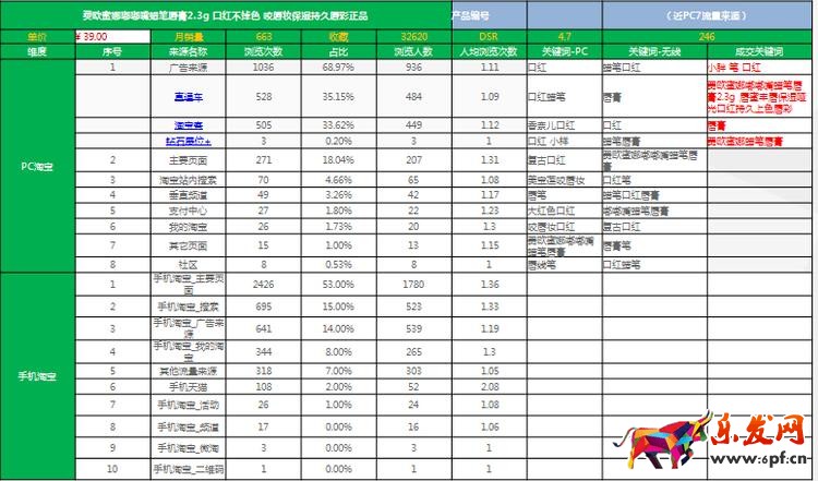 我們可以發現店鋪的流量來源入口,也可以看到商品的PC端關鍵詞和無線端關鍵詞,以及成交關鍵詞,那我們針對這些關鍵詞做個數據跟蹤和效果解析。由于現在重心是無線端,所以單獨對無線端關鍵詞來進行分析。