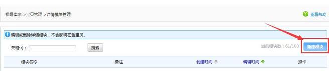 2、進(jìn)入詳情頁(yè)模塊管理,新建模塊;
