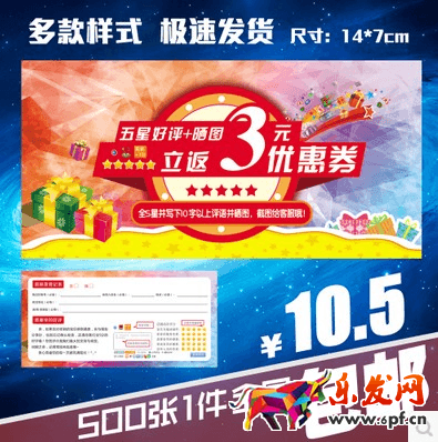 1、全5分返現、好評返現、好評返紅包、好評返優惠券等引導好評的類似內容;
