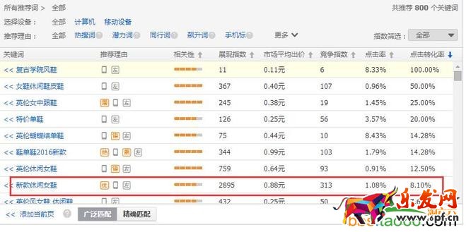 1、符合寶貝的的屬性,且關鍵詞的點擊轉化率過硬,流量OK,點擊率OK,競爭度和出價OK,也就是行業高轉化詞,如下圖