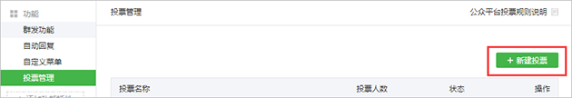 您可通過公眾平臺=》功能=》投票管理=》新建投票