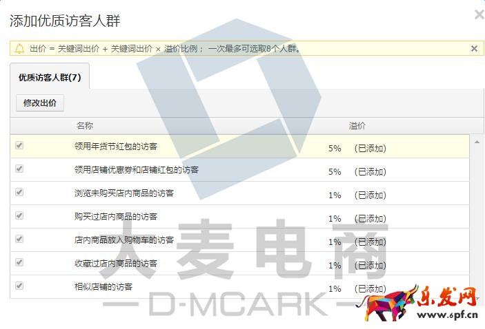 瀏覽、收藏、購買過店鋪商品的一些客戶,這些客戶就是我們的核心客戶,這些客戶對于寶貝來講是精準人群,能夠做到喚醒這些并沒有購買或者只是購買一次的客戶再次購買!這意味著加大溢價從而展現是必須的!