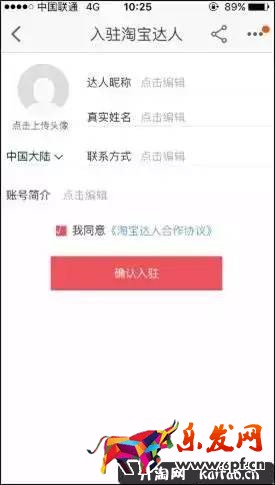 4、這個時候,我們就可以看到系統提示需要入駐淘寶達人,當你填寫資料申請后,通過審核,即可開啟直播。