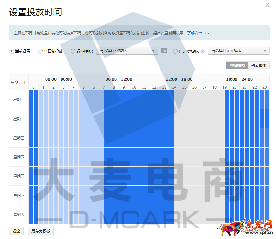 4.時間折扣設置因為店鋪花費本身就不多的情況下,我們盡量把流量在店鋪轉化時段高的時間引入店鋪,讓轉化時段低的時候少花點錢。那么我們生意參謀或者生e經里面查看店鋪成交時段進行設置。