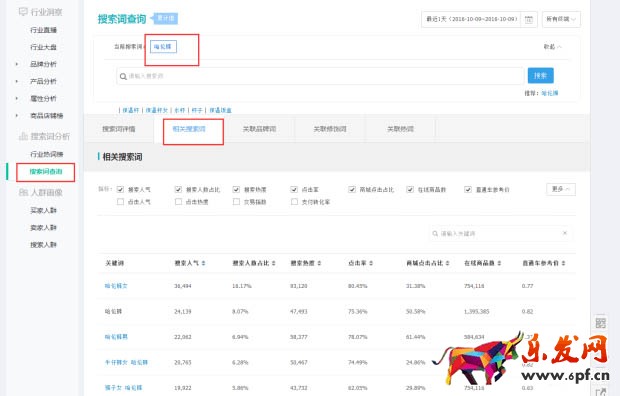 4、在市場(chǎng)行情里面把前50的相關(guān)搜索詞找出來,只要無線的,近30天的,例: