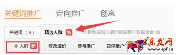 如上圖所示,在進入我們直通車計劃中,關鍵詞推廣下,有一個精選人群。進入以后,我們可以看到,分為: