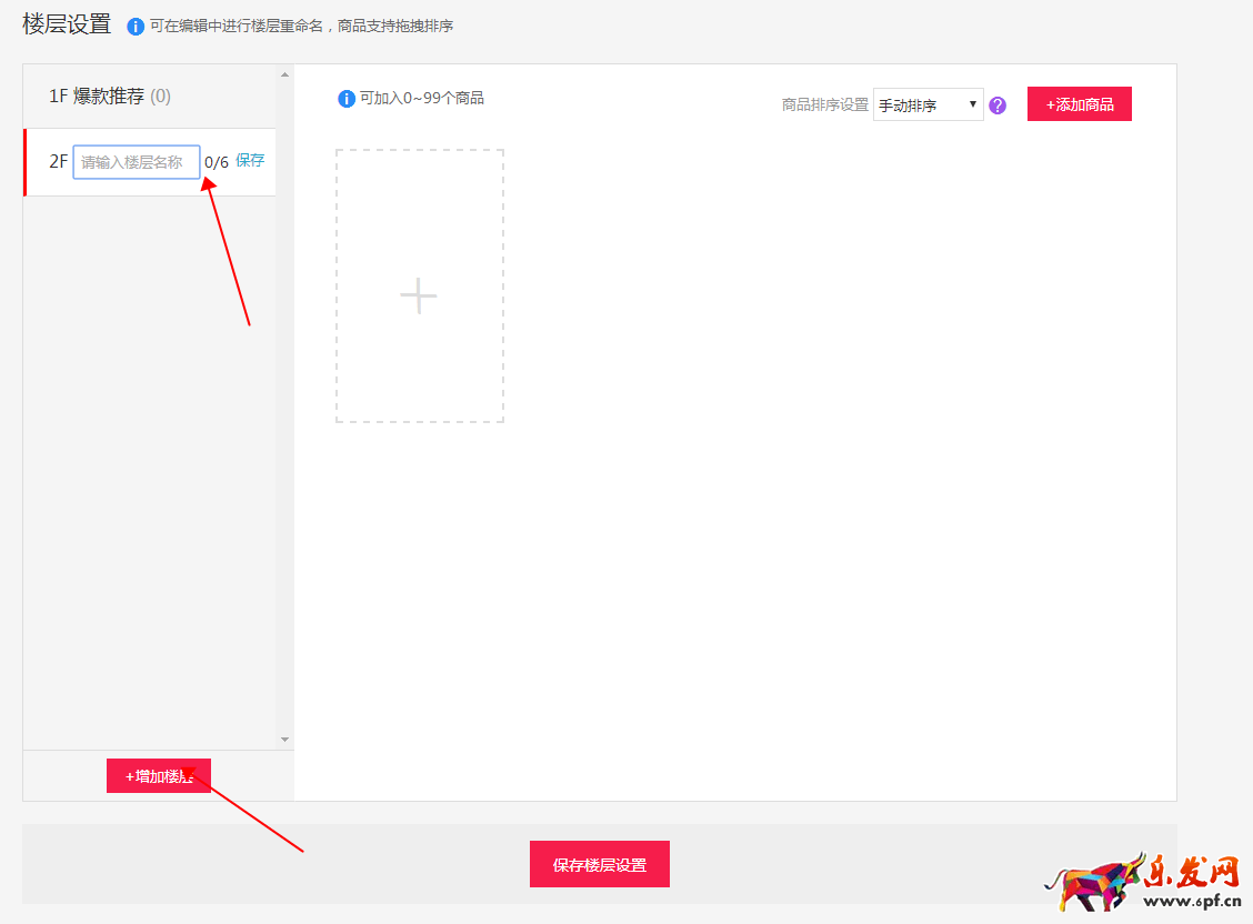 點擊添加樓層,可以根據你的產品規劃和參團商家進行蓋樓