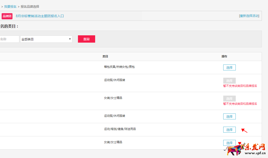 3、點擊立即報名進入店鋪需要報名的產品類目;