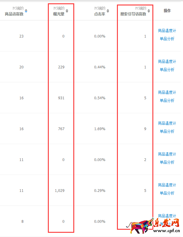 步驟三:然后觀察下你的產(chǎn)品-曝光量-點(diǎn)擊率-搜索引導(dǎo)訪客數(shù)之間的對(duì)比如下圖所示: