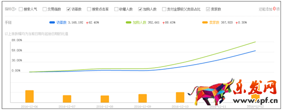 有沒有發現一丟丟的規律:他們三個的變化趨勢幾乎快要完全重合了,加購的增長趨勢稍稍明顯一些而已!這是大盤的數據,意味著什么?意味著一般情況下,實際上任何一個類目,在現在的購買行為下:訪客數、訂單數、收藏人數、加購人數,都應該是同步上漲的(對于一個爆款而言)。