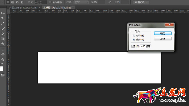 然后得到一個空白頁面后,新建參考線,垂直方向是485,然后新建第二條1435,確定