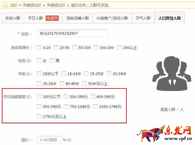 所以會(huì)員等級(jí),就決定著資深淘寶天貓?jiān)L客、高消費(fèi)和高購(gòu)買頻次的訪客的人群溢價(jià),是溢價(jià)多一點(diǎn)還是少一點(diǎn)就可以大致取決于這個(gè)點(diǎn)來(lái)調(diào),就不用去瞎碰著測(cè)試。而消費(fèi)層級(jí)則是消費(fèi)人群的人群溢價(jià)的參考,有月銷300以下--1750以上: