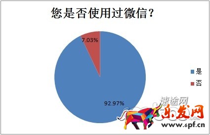 通過微信的用戶調(diào)查,我們了解到有92.97%的用戶使用過微信,微信的普及量已經(jīng)非常高,只有7.03%的用戶沒有使用過微信。那么用戶最初是出于什么原因才使用微信的呢?