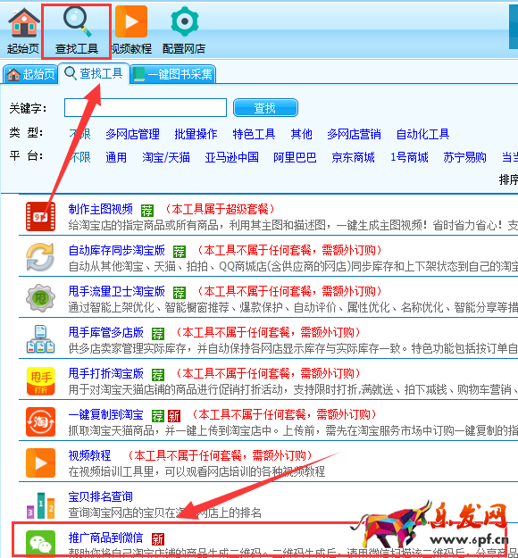 1.下載甩手工具箱,注冊賬號,已有賬號可以直接登錄,找到查找工具,找到推廣商品到微信。
