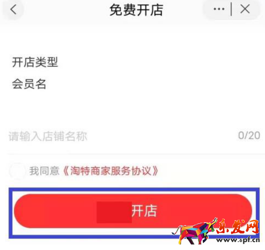 2、選擇個人或企業入駐開店,輸入店鋪名稱等信息,點擊開店。