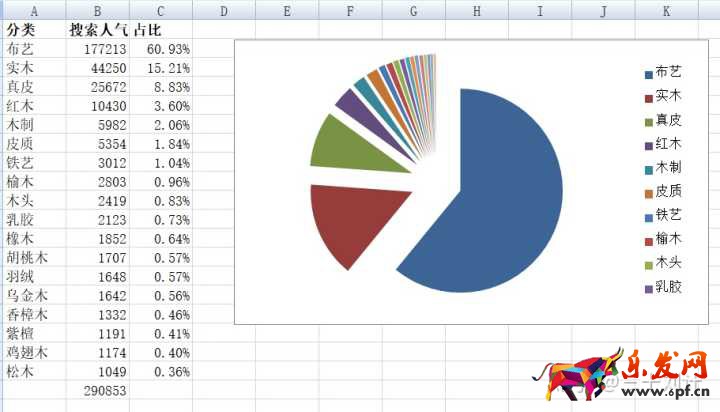 可看出都有哪些材質的沙發是消費者所關注的,以及關注度高低??梢钥闯?ldquo;布藝”是最受歡迎的,其次是“實木和布藝”。