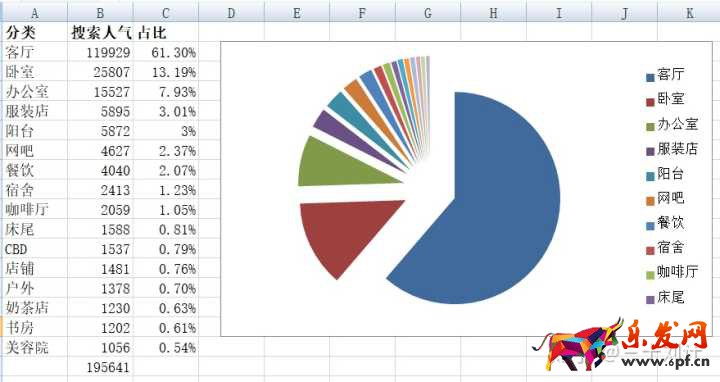 可以看出沙發網購的需求場景,重點分別是“客廳、臥室、辦公室”