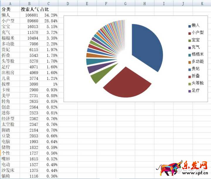 反映了消費者想買什么類型的沙發,這里可以看出很多小眾的細分需求??梢钥闯?ldquo;懶人、小戶型”是消費者需求重點,這正是網絡購物年輕群體的消費特點。“寶寶、充氣”是值得注意的需求點。