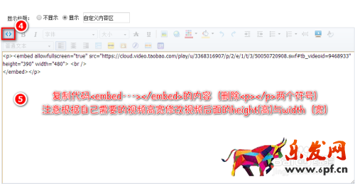 第三:把替換好的視頻代碼放進淘寶后臺進行預覽測試(放好對應的全屏代碼)