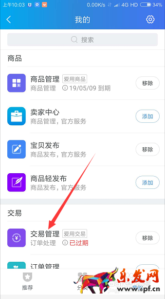 在我的里面,點擊交易管理。